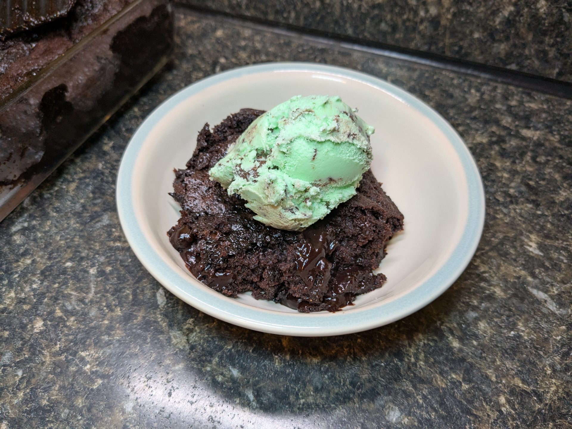 - Bake your mix for 40 minutes. It will still look half underdone, but that's just the pudding. Remove from the oven and let cool for 15 minutes so the pudding has time to set. Top with ice cream, whipped cream, or other toppings, and enjoy!