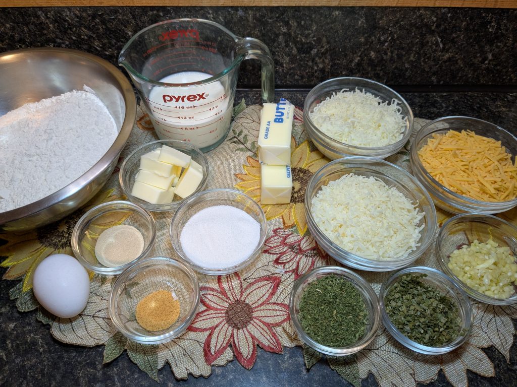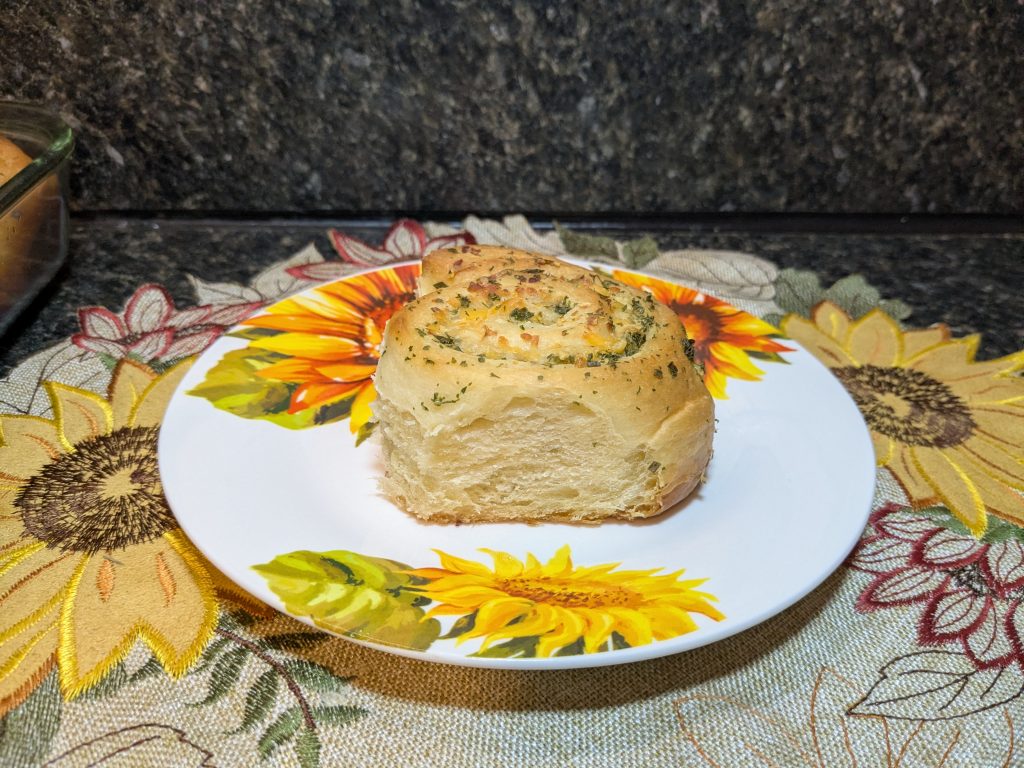 That’s not the inspiration for today’s post, but it is something similar. These garlic cheese rolls have the same spiral form factor as cinnamon rolls, but with a slightly sweet bread dough similar to a brioche, and a garlic and cheese filling worked in. They’re soft, they’re savory, and they work great accompanying any dinner meal.