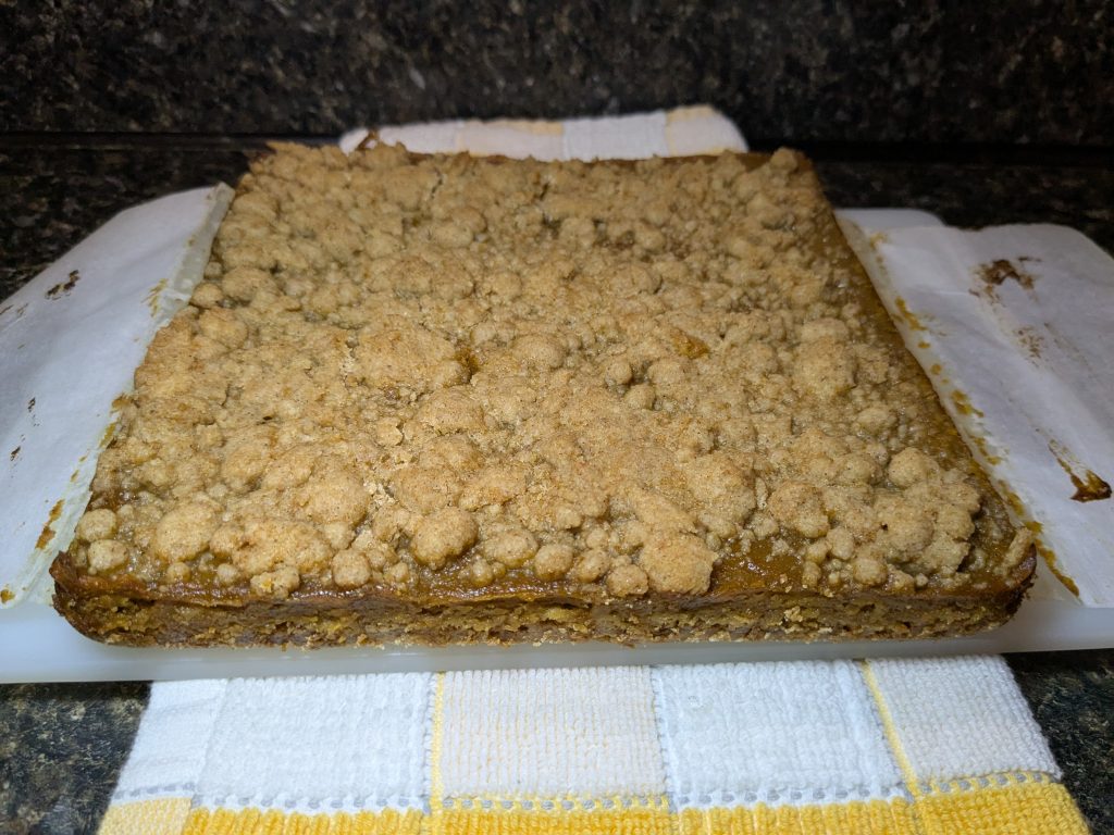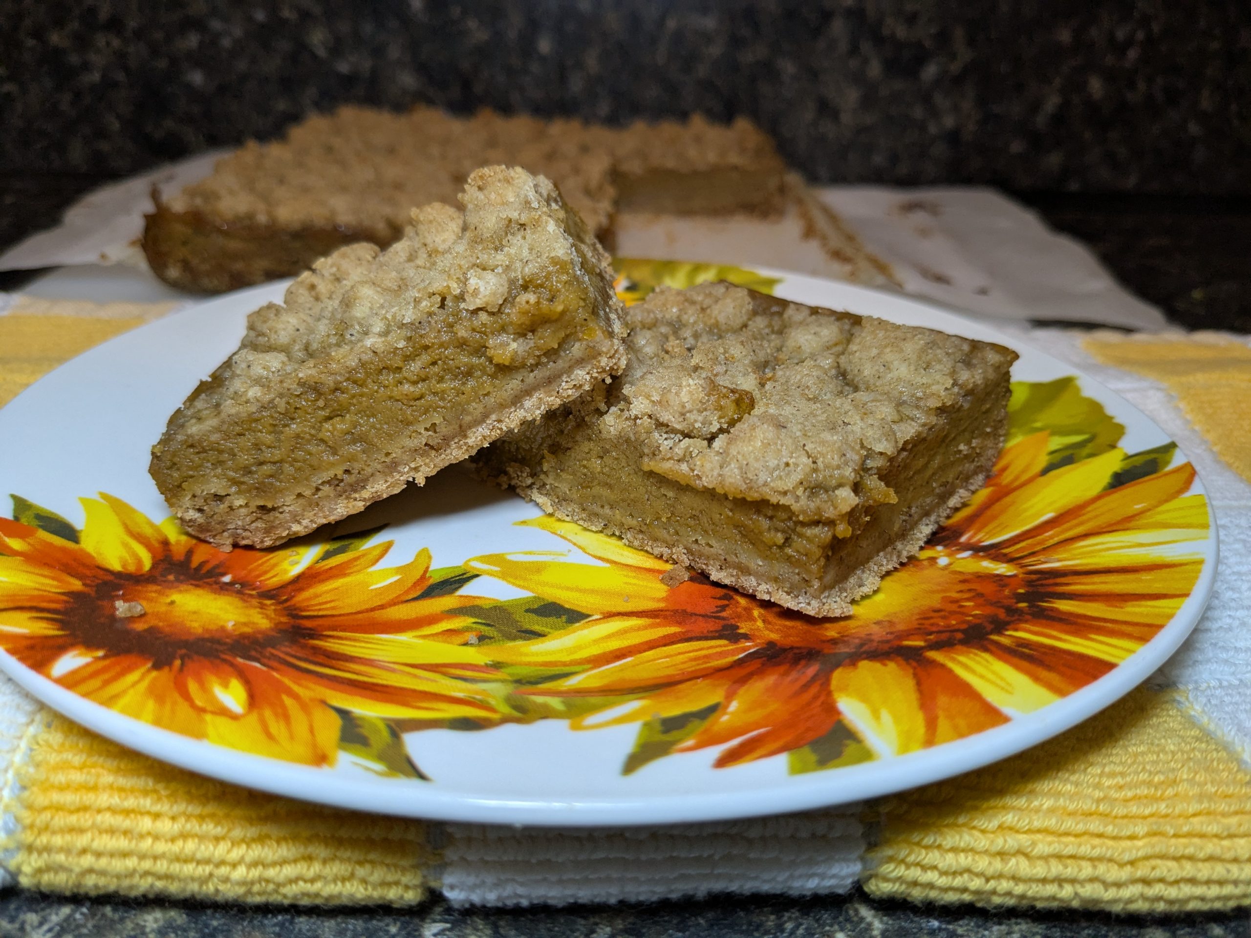 These bars were an experiment to see if I could make something similar, but with enough of a difference to make them tick all my boxes. The verdict: kind of. The texture is still there, soft and creamy in the middle, but the crumble base and topping give it a bit of variation beyond what pie crust does.