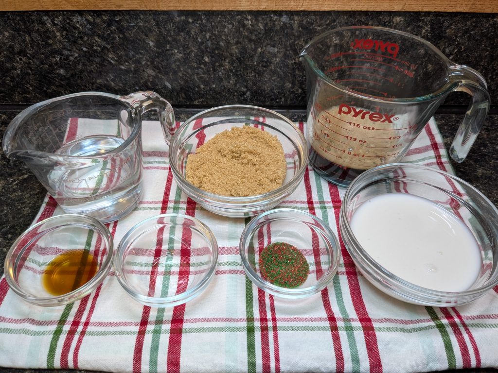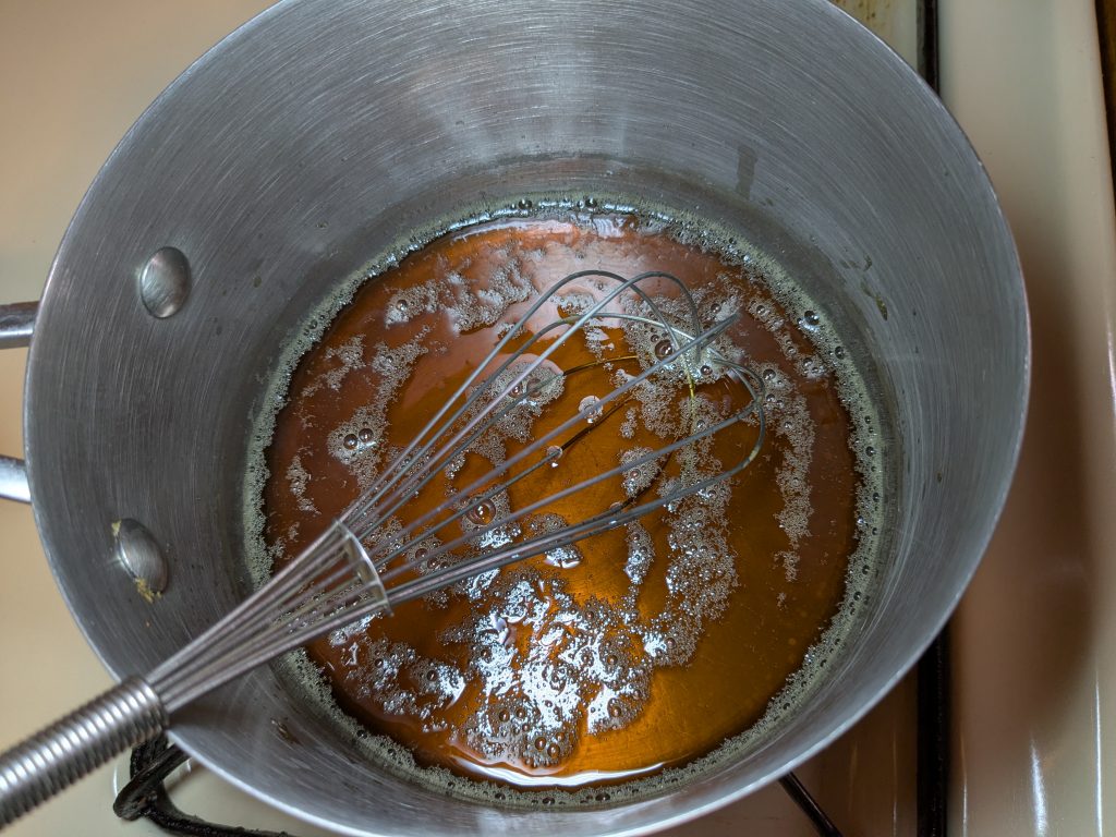 - In your sauce pan, over medium heat, add the water and brown sugar. Whisk this as it heats to dissolve and prevent the sugar from burning. Simmer it for around 5 minutes to thicken it slightly.½ Cup Brown Sugar, ½ Cup Water