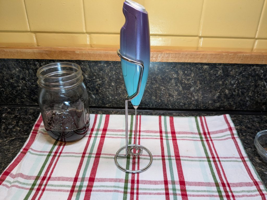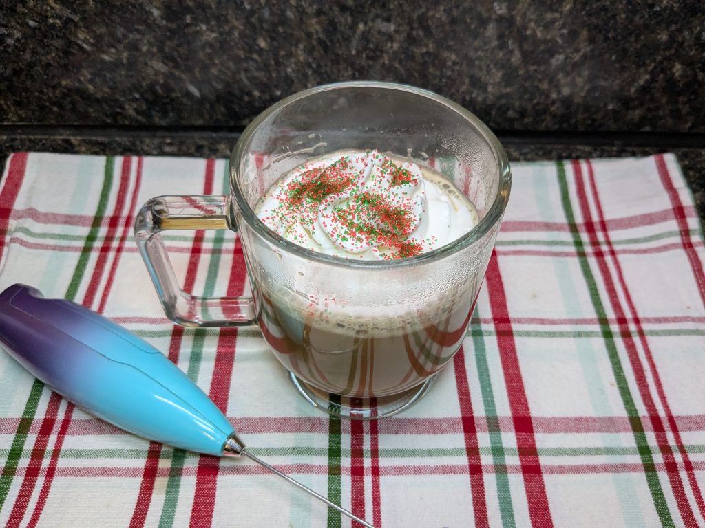 As a side note, I love my little milk frother here. It was a secret santa gift a couple years ago and I use it all the time. If you want something to mix quick drinks, it’s a super great investment! If you want the same one I have, it’s this Zulay Milk Frother (that’s an Amazon affiliate link), which costs under $20 and will last years.