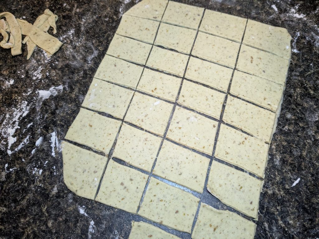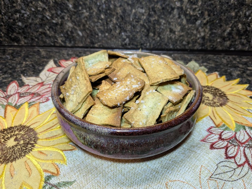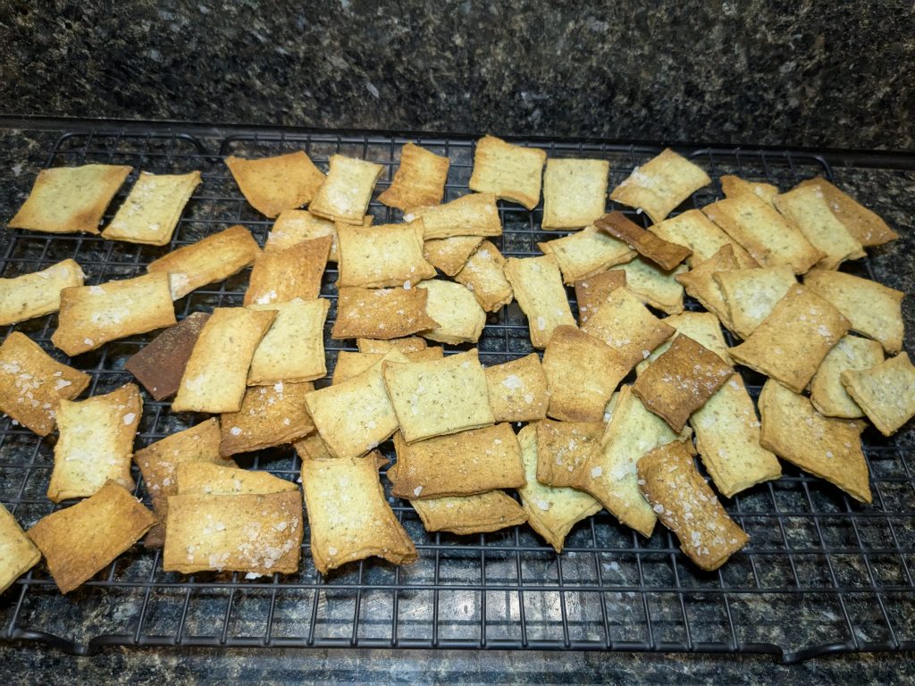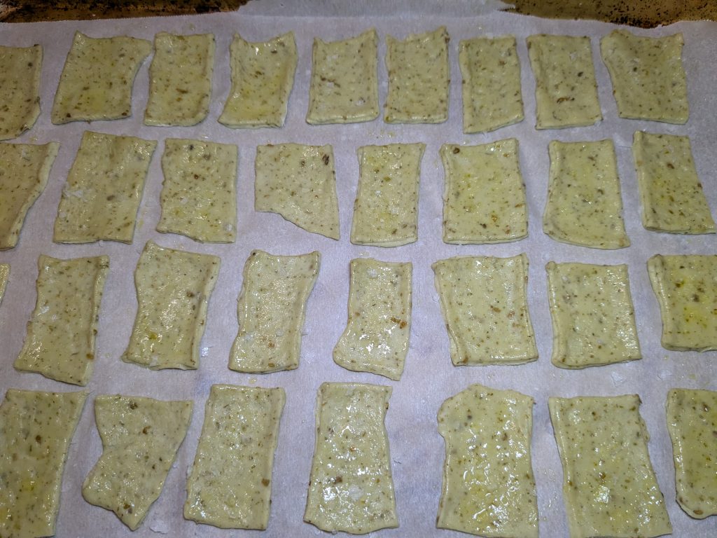 A batch of homemade crackers flavored with the Levantine spice mix za'atar.